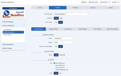 - Completely rewritten SobiPro template default7. It supports Bootstrap 2, 3, 4 and 5 as well as Font Awesome 3, 4, 5 and Google's Material Icons and has a lot of new and handy template settings and features new colour themes.